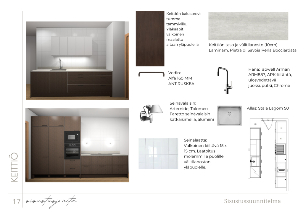 - materiaalivalinnat (laatat, pinnat, kiintokalusteet)